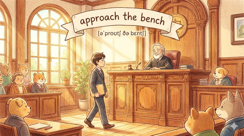 approach the bench [əˈproʊtʃ ðə bɛntʃ]