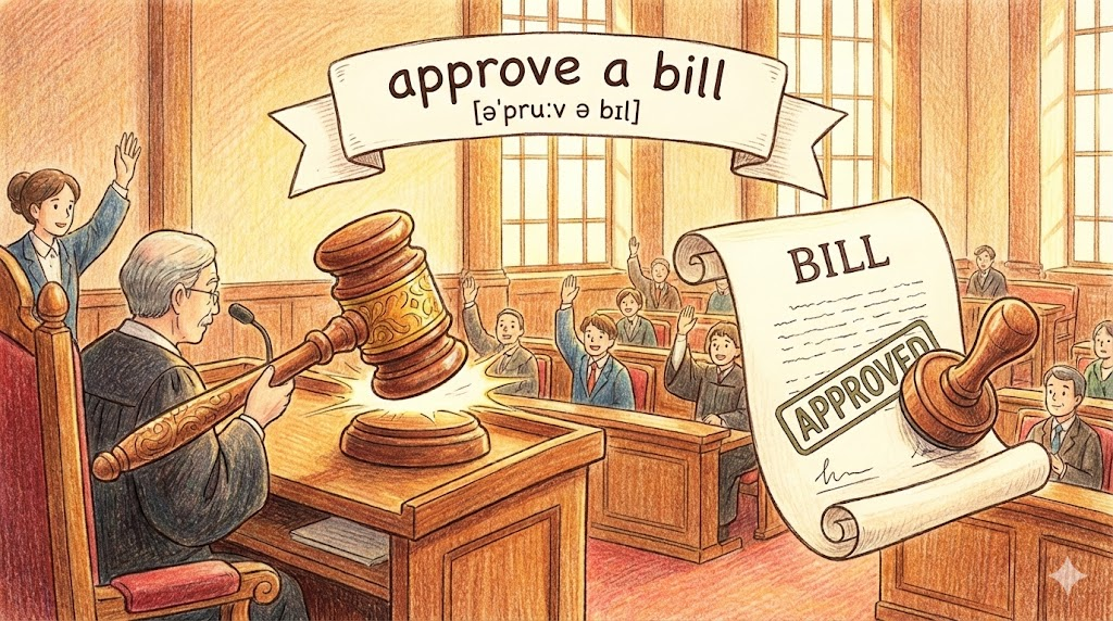 approve a bill은 의회에서 '법안을 통과시키다' 입니다.