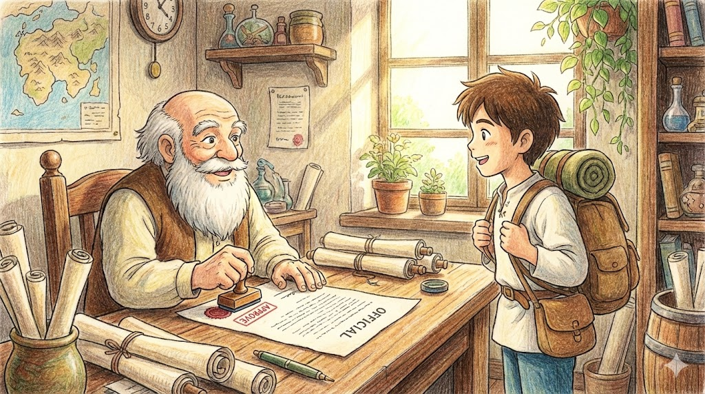 - 공적 상황: 서류 심사를 거쳐 "합격(Approved)" 도장을 쾅 찍는 느낌입니다.