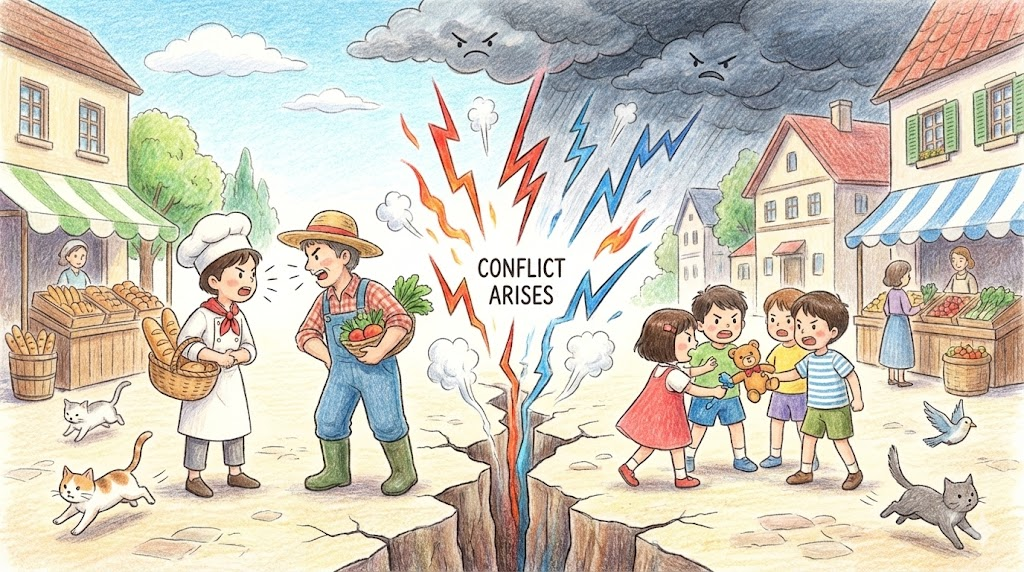 conflict arises [ˈkɒnflɪkt əˈraɪzɪz]
