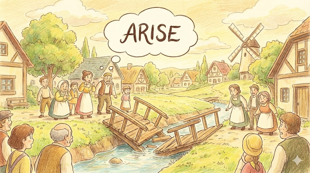| 고대 영어 arisan (일어서다) | "수면 위로 등장" | (몸을) 일으키다 (고어) → 사건이 일어나다 (발생) → ~에서 기인하다 (arise from) |