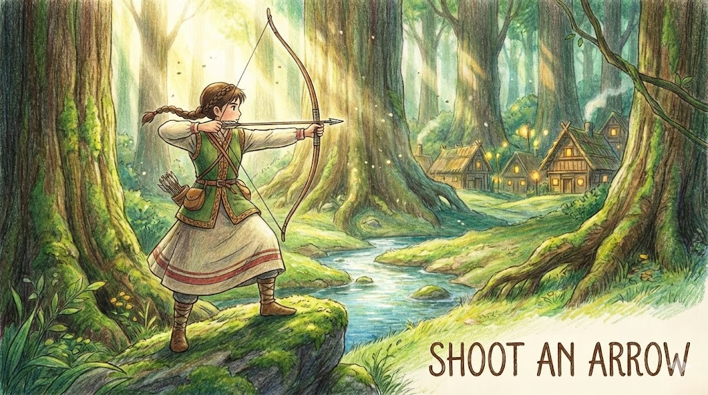 - 해석: 화살을 발사하는 행위입니다. 동사 'fire'나 'release'를 쓰기도 합니다.