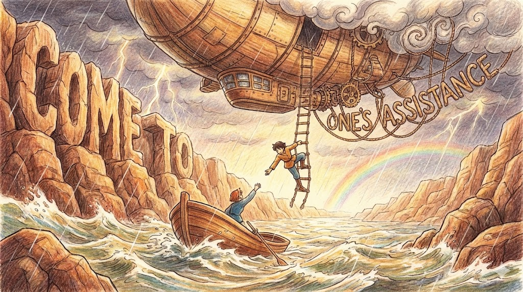 - 해석: 곤경에 처한 사람을 돕기 위해 달려오는 상황을 묘사하는 격식 있는 표현입니다.