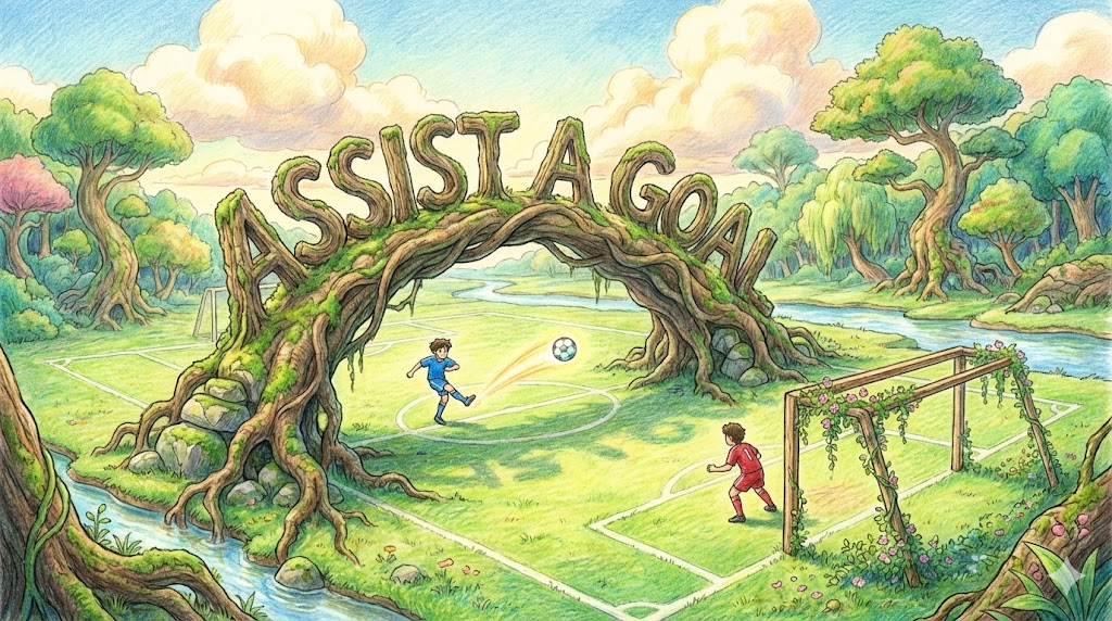 | 라틴어 assistere (곁에 서다) | "Stand by" | 곁에 서다 (대기) → 거들다/보조하다 (업무 지원) → 어시스트 (스포츠 득점 지원) |