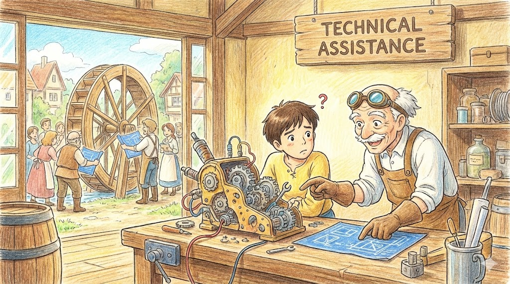 technical assistance [ˈtɛknɪkəl əˈsɪstəns]
