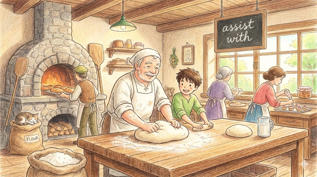 | 동사 (V.) | 돕다, 보조하다 | (Help보다 격식) 주된 일을 하는 사람을 옆에서 거들다. | Can you assist me with this project? (이 프로젝트를 좀 도와줄/거들어줄 수 있나요?) |