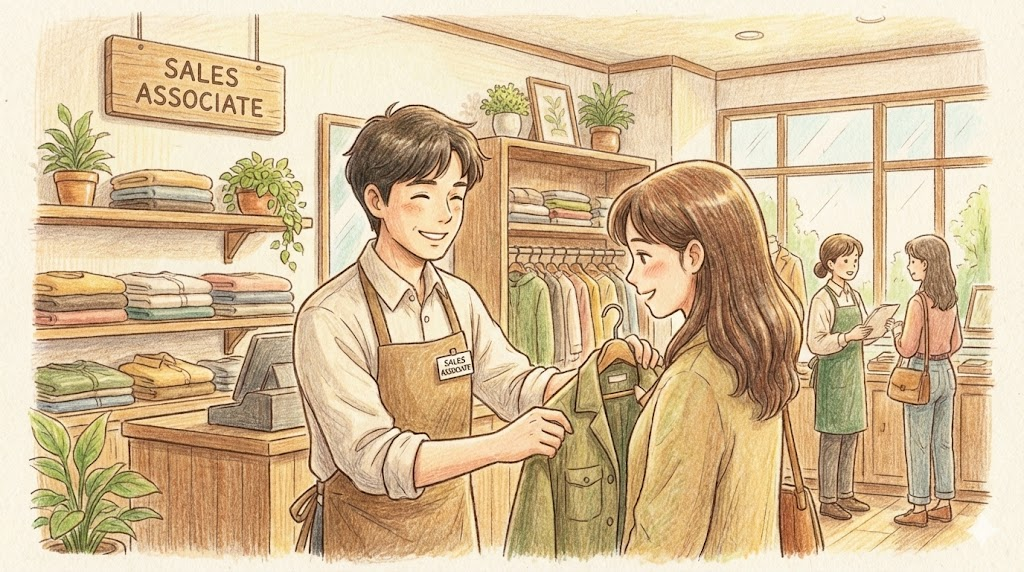 백화점이나 마트, 옷 가게에서 일하는 직원을 부르는 가장 일반적이고 정중한 호칭입니다. 'Clerk'이나 'Salesperson'보다 좀 더 전문적이고 듣기 좋은 어감을 줍니다. 월마트나 명품 매장 직원 모두를 아우르는 표현입니다.