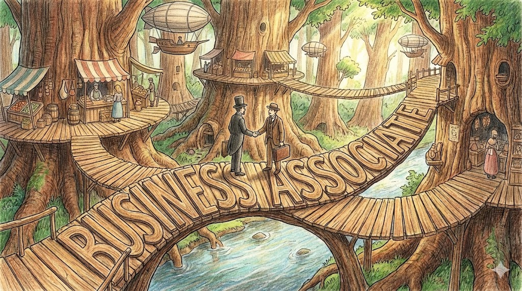 - 직업적 연결: 일로 맺어진 관계인 'business associate(사업 동료/협력자)' 를 뜻하거나, 직함 앞에 붙어 '준(準)-, 부(副)-' 의 의미를 가집니다.
