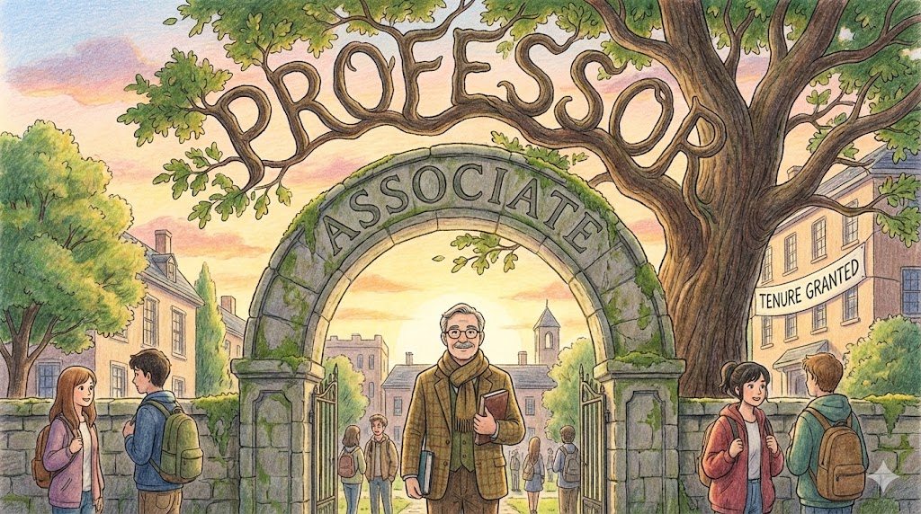 - 해석: 대학교수의 직급 중 하나입니다. (Assistant professor: 조교수 -> Associate professor: 부교수 -> Professor: 정교수)