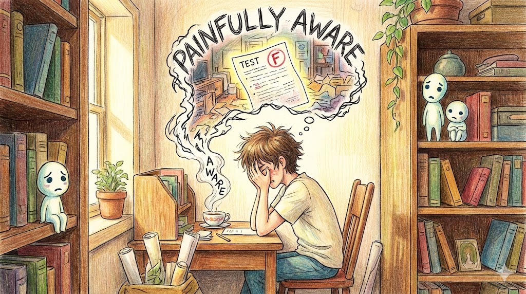 - 부정적: 남들이 나를 어떻게 볼지 너무 신경 써서 행동이 부자연스럽고 위축된 상태(Self-conscious)를 뜻하기도 합니다.
