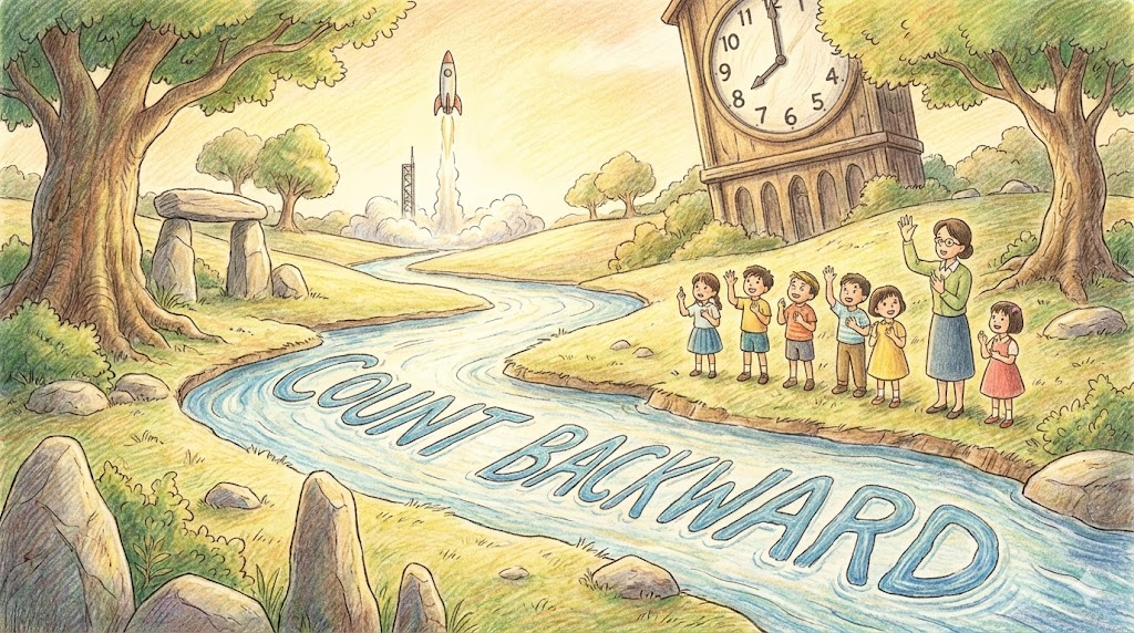 숫자를 1, 2, 3 순서가 아니라 10, 9, 8... 순서로 내려가며 세는 것입니다. 로켓 발사 전의 카운트다운, 아이들에게 숫자 개념을 가르칠 때, 혹은 흥분을 가라앉히거나 최면을 걸 때 숫자를 거꾸로 세게 하는 상황에서 씁니다.