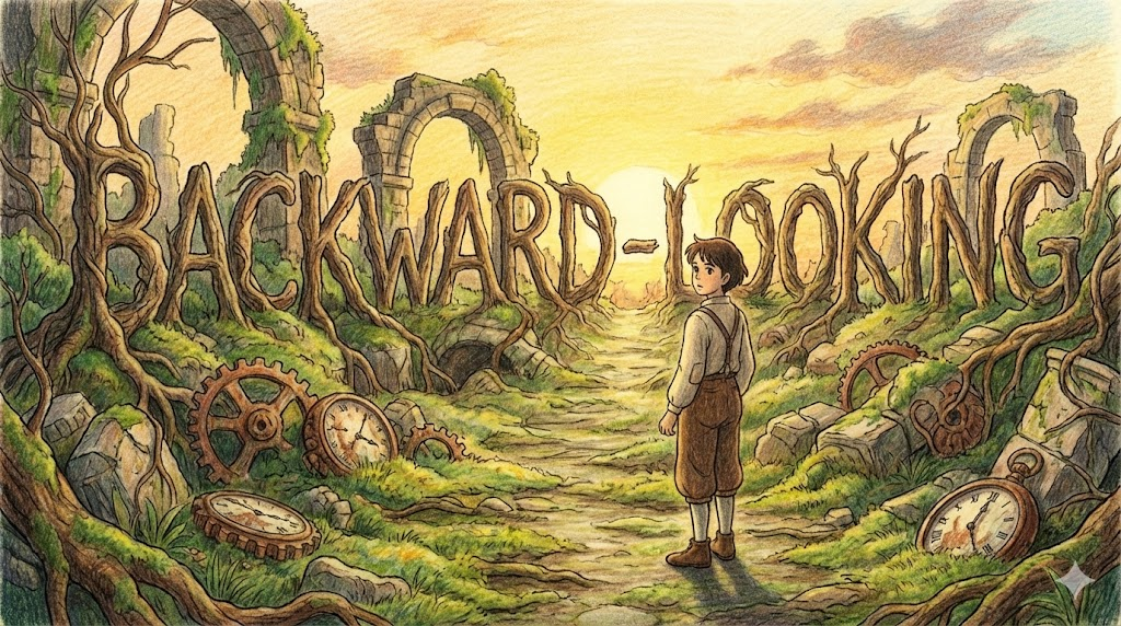 - Backward-looking. (퇴영적인 / 과거지향적인. - 미래를 보지 않고 과거만 보는)