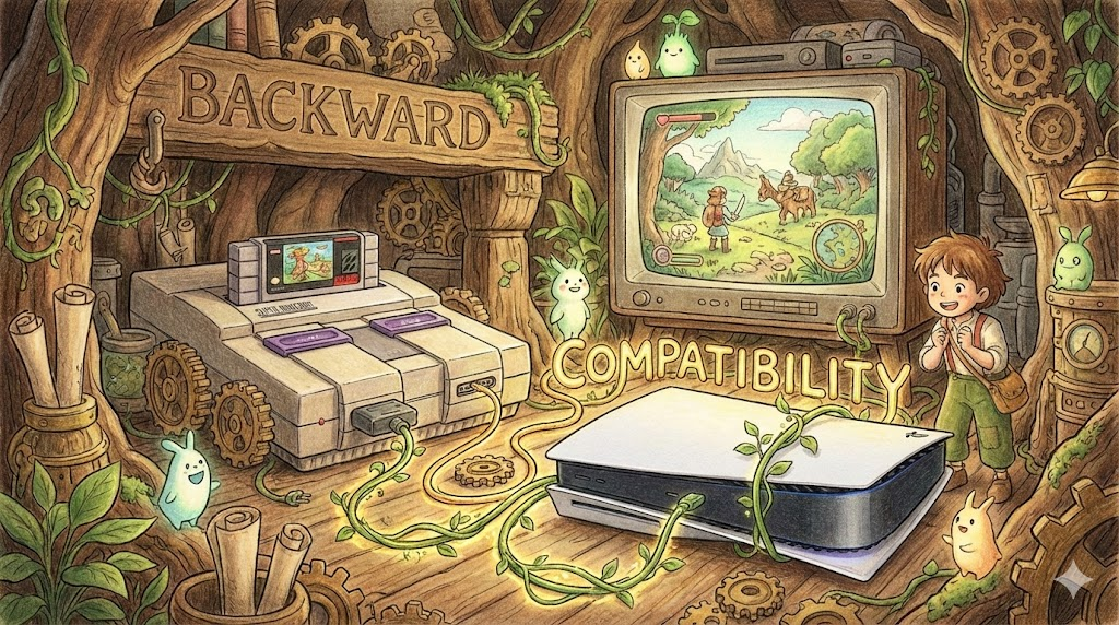 IT 및 게임 용어입니다. 새로 나온 기계나 소프트웨어(신형)에서 옛날 것(구형)도 문제없이 작동하는 기능을 말합니다. 예를 들어, '플레이스테이션 5'에서 '플레이스테이션 4' 게임이 돌아가면 "하위 호환이 된다"라고 합니다.