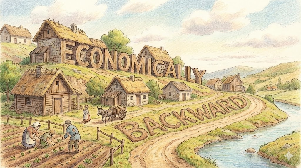 economically backward [ˌiːkəˈnɑːmɪkli ˈbækwərd]