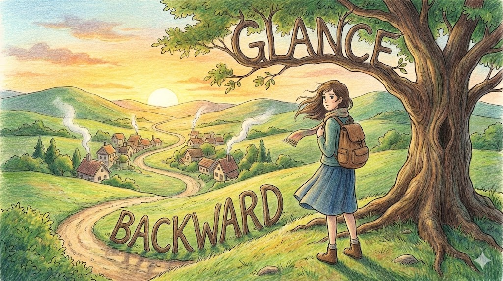 물리적으로 고개를 돌려 뒤를 보는 행동뿐만 아니라, 문학적으로는 '지나간 과거를 잠시 되돌아보는 것' 을 의미합니다. 주로 떠나는 사람이 아쉬움에 뒤를 돌아보거나, 혹은 반대로 미련 없이 떠날 때 "Without a backward glance(뒤도 안 돌아보고)"라는 표현으로 자주 씁니다.