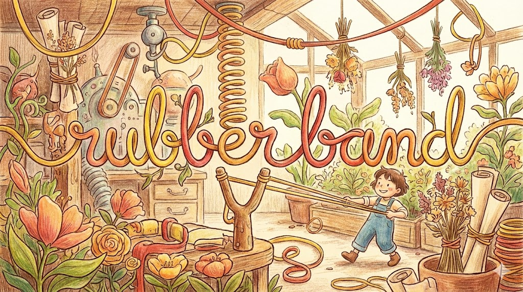 | rubber band | 고무줄 | 명사구, '도구'. | '고무' '(' 'rubber' ') '로' '만들어진' '묶는' '띠'. |