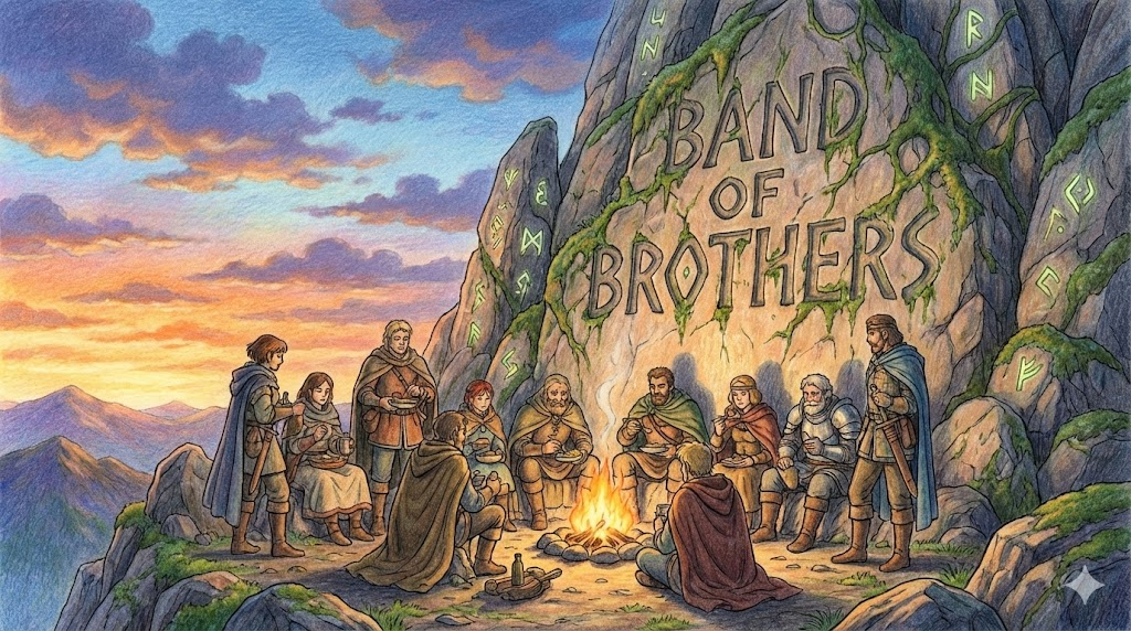 셰익스피어의 희곡 <헨리 5세>에서 유래했고, 유명한 전쟁 드라마 제목이기도 합니다. 단순히 친한 친구들이 아니라, 전쟁터 같은 극한 상황에서 목숨을 걸고 함께 싸우며 피를 나눈 형제처럼 끈끈해진 집단을 뜻합니다. 군대나 스포츠 팀, 혹은 힘든 프로젝트를 같이 끝낸 동료들에게 최고의 찬사로 씁니다.