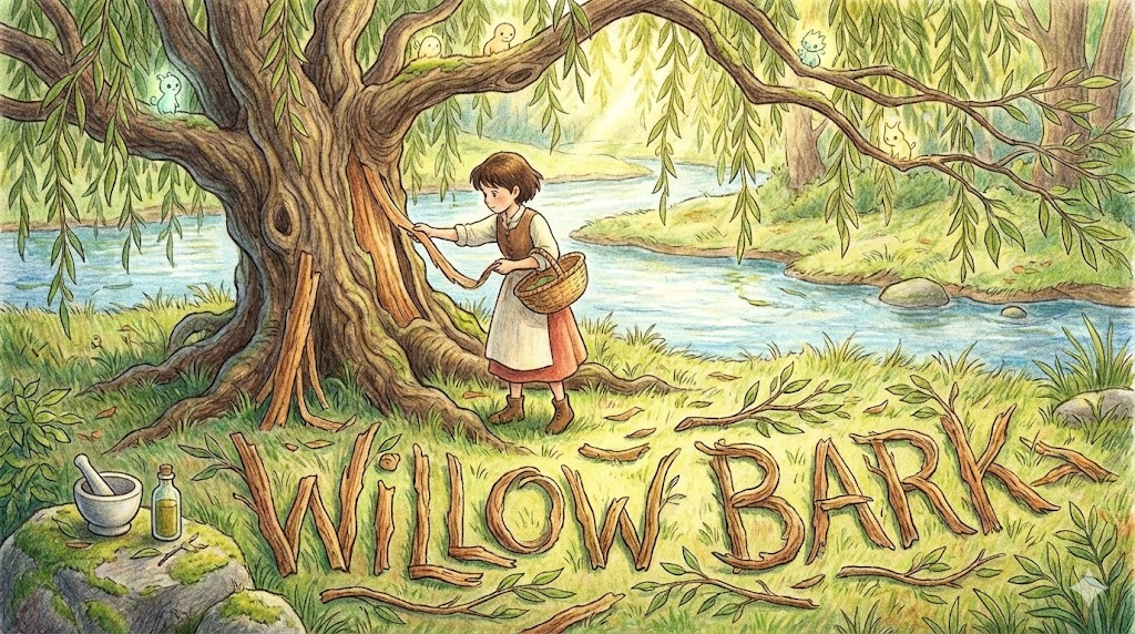 Willow bark는 고대부터 진통제로 쓰인 '버드나무 껍질' 입니다.