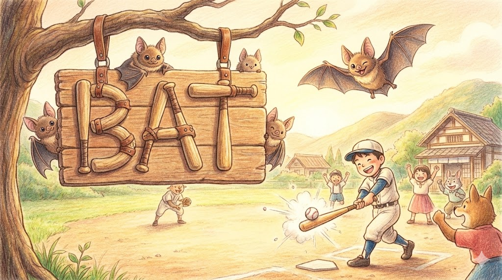 bat는 어둠 속을 누비는 '박쥐' 의 신비로움과, 담장 밖으로 공을 날려 보내는 '타자' 의 시원한 타격감이 공존하는 단어입니다.