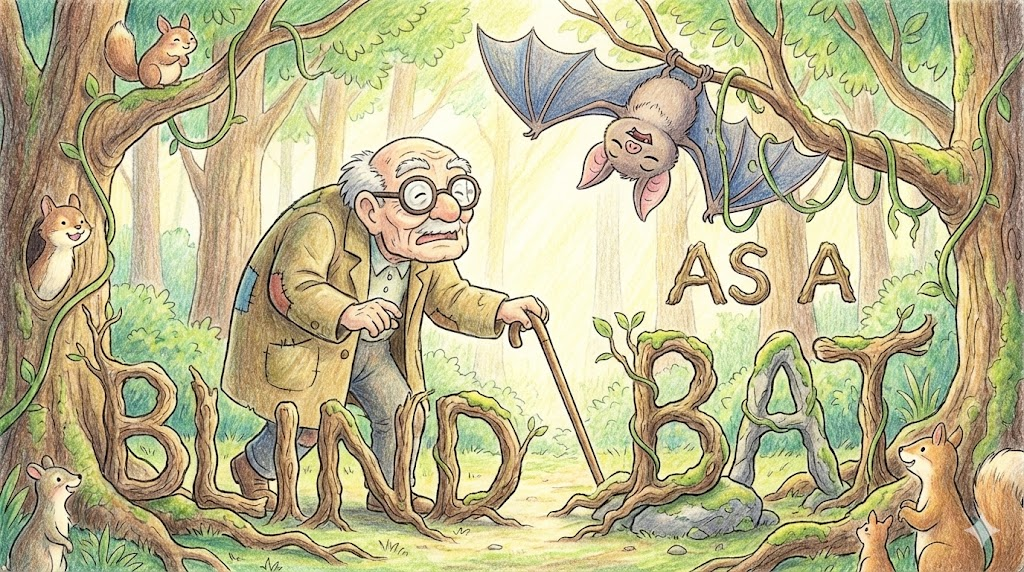 - 해석: 박쥐가 시력이 나쁘다는 통념에서 유래하여, 앞이 잘 안 보이거나 시력이 매우 나쁜 사람을 비유합니다. (실제 박쥐는 눈이 보입니다.)