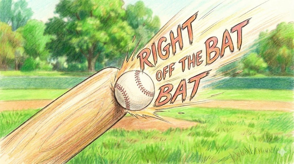 - right off the bat: 공이 배트에 맞는 '즉시' 날아가는 것에서 유래하여 '즉시(곧바로)' 라는 뜻으로 매우 자주 쓰입니다.