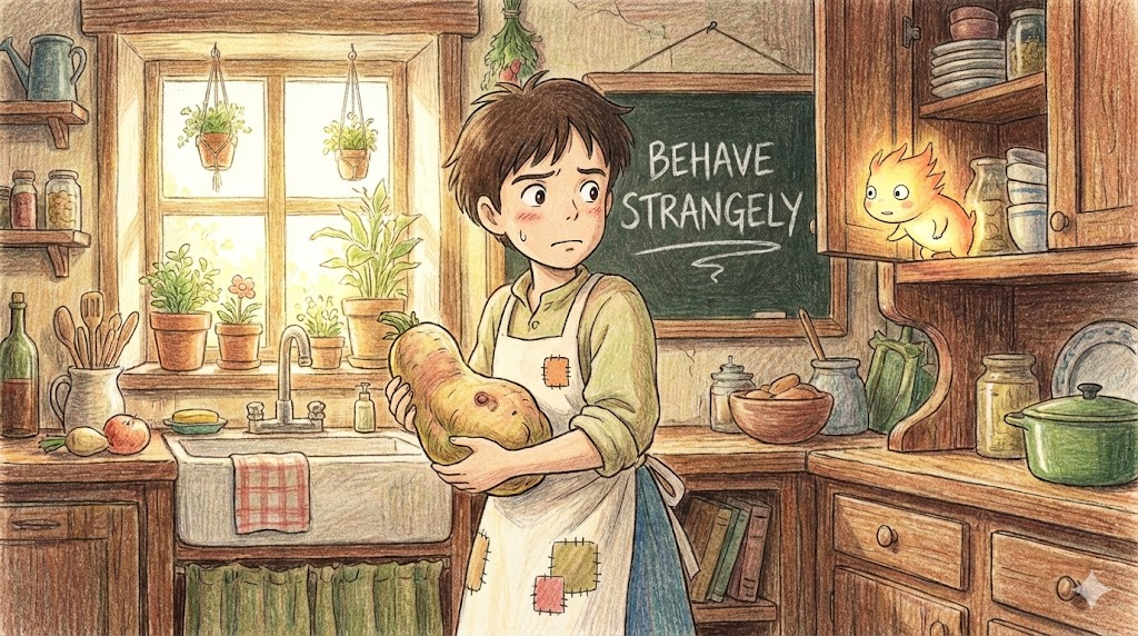 - Strangely: 평소와 다르게 '이상하게' 구는 것.
