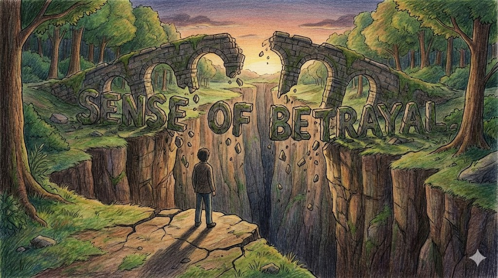 sense of betrayal [sɛns ʌv bɪˈtreɪəl]