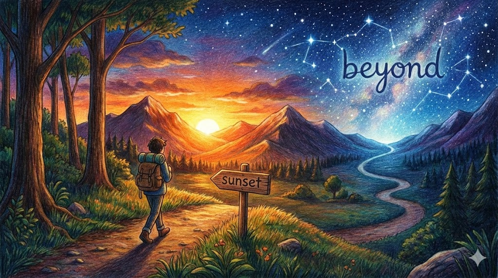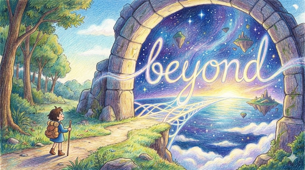 beyond는 눈에 보이는 지평선 '너머' 의 미지의 세계이자, 우리의 상식이나 능력이 닿지 않는 '한계 밖' 의 영역입니다.