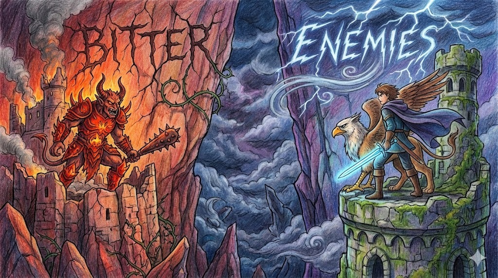 | hostile | 적대적인 (bitter enemies의 관계를 설명하는 형용사) |