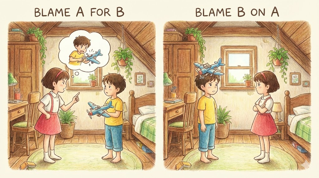blame A for B vs. blame B on A