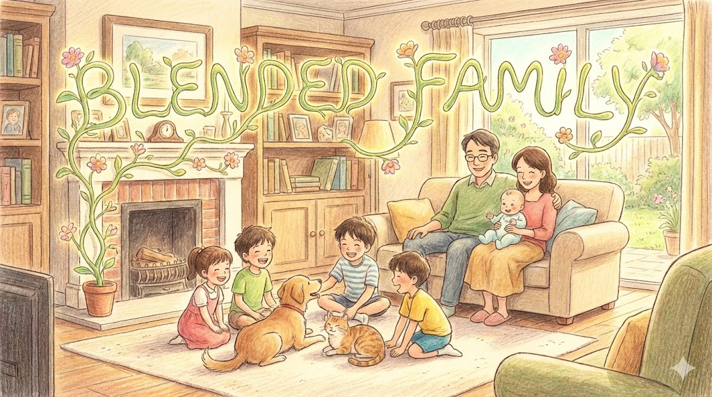 과거에는 'Step-family(계부모 가정)'라는 말을 썼지만, 어감이 딱딱해서 최근에 더 많이 쓰는 긍정적인 표현입니다. 서로 다른 두 가족이 만나서 하나의 새로운 가족으로 '잘 섞여서(Blend) 조화를 이룬다' 는 뜻을 담고 있습니다. 부모 중 한쪽이나 양쪽이 재혼하여, 전혼 자녀와 현재의 자녀가 함께 사는 형태를 말합니다.