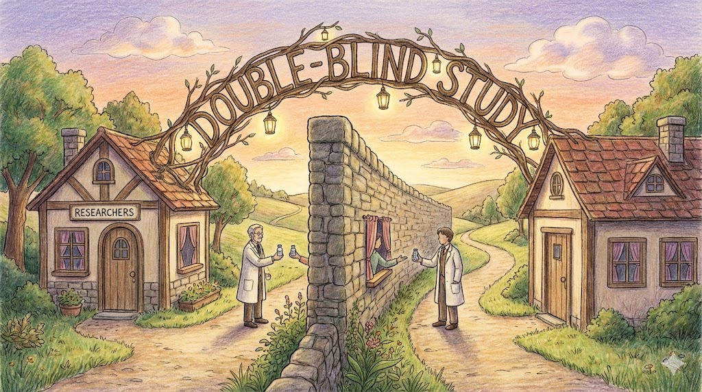의학이나 과학 실험에서 가장 신뢰도가 높은 방법입니다. 실험을 진행하는 '의사' 와 실험 대상인 '환자' 둘 다(Double), 누가 진짜 약을 먹고 누가 가짜 약(플라시보)을 먹는지 '모르게 가려놓은(Blind)' 상태에서 진행하는 연구입니다. 선입견을 배제하기 위함입니다.