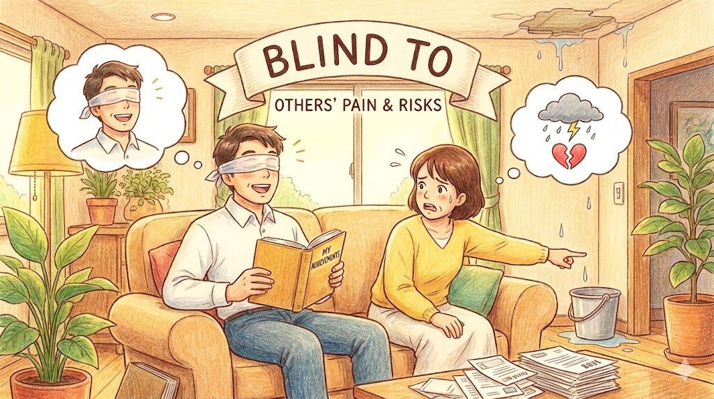 - 정신적: "Love is blind" 처럼 감정에 휩쓸려 이성이 마비되거나, 편견 때문에 진실을 '보지 못하는(Unaware)' 상태를 뜻합니다.