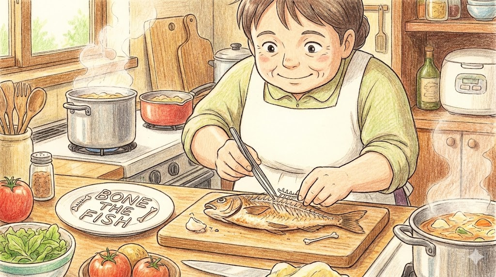 (생선·고기의) 뼈를 발라내다 (동사).