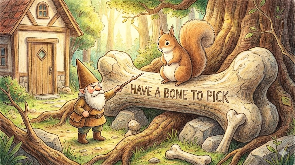 have a bone to pick [hæv ə boʊn tu pɪk]