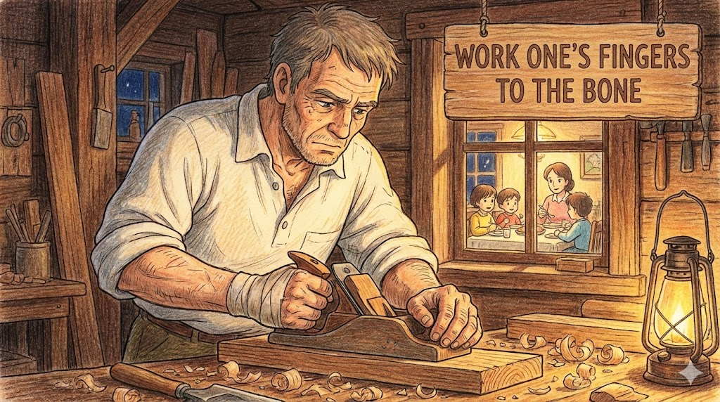 work one's fingers to the bone [wɜːrk wʌnz ˈfɪŋɡərz tu ðə boʊn]
