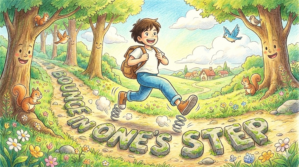 - Bounce in one's step: 기분이 좋거나 자신감이 넘쳐서 걸음걸이가 통통 튀는, 즉 '발걸음이 가볍고 활기찬' 모습입니다.