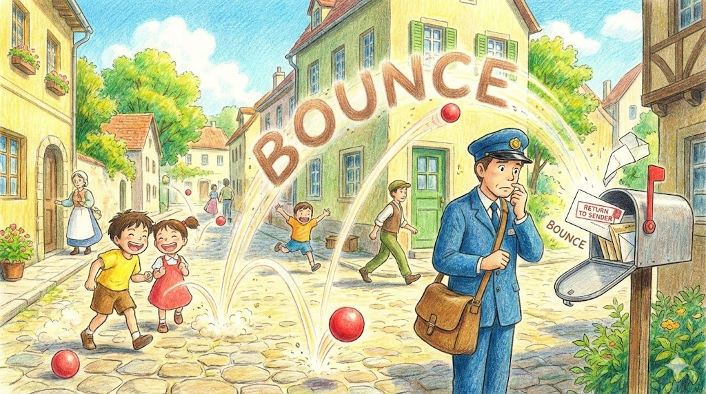 가장 기본적으로는 고무공이 바닥에 닿았다가 '탄력 있게 튀어 오르는(Spring)' 물리적인 움직임입니다. 사람에게 쓰면 '활기차게 걷다' 는 뜻이 되고, 머리카락에 쓰면 '찰랑거린다' 는 뜻이 됩니다. 또한, 이메일을 보냈는데 주소가 틀려서 다시 돌아오는 것도 '반송되다(Bounce)' 라고 합니다.