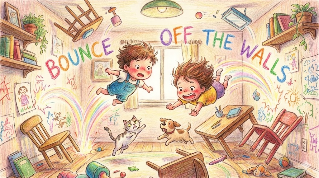 6. bounce off the walls (몹시 흥분하다/펄펄 뛰다)