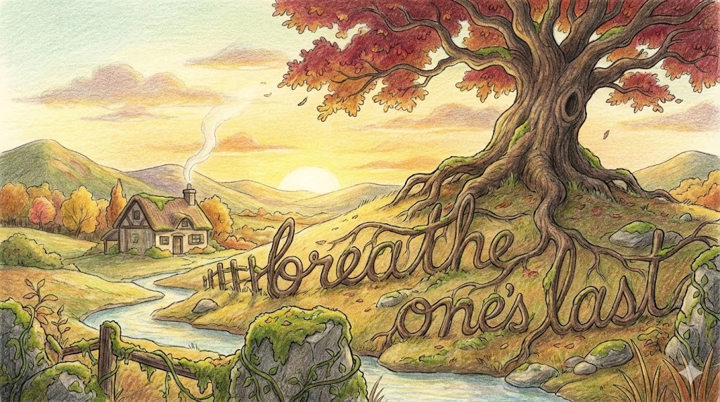 - Breathe one's last: 마지막 숨을 쉬다, 즉 '숨을 거두다(임종을 맞다)' 라는 문학적이고 정중한 표현입니다.