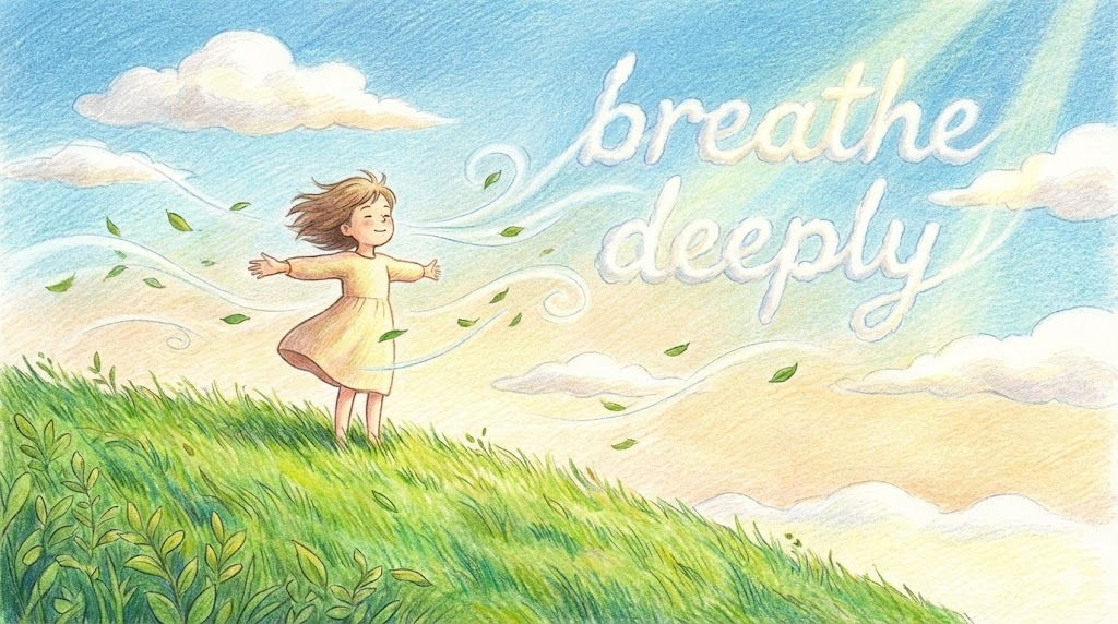 - 여유: 바쁜 일상 속에서 "Just breathe(그냥 숨 좀 쉬어)" 라고 말하면, 당황하지 말고 침착하게 여유를 가지라는 조언이 됩니다.