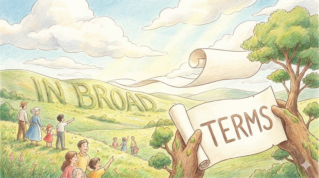 in broad terms [ɪn brɔːd tɜːrmz]
