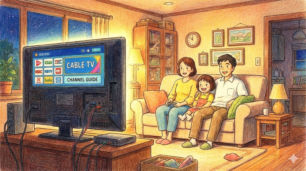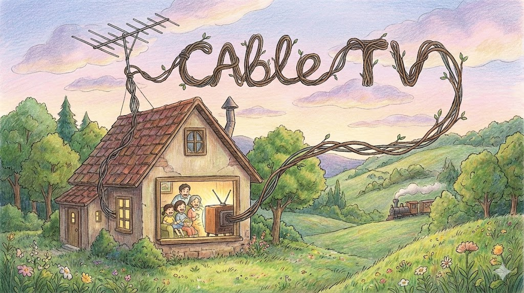 공중파(Antenna)가 아니라, '유선 케이블' 을 통해 신호를 받아 보는 텔레비전 방송 시스템입니다. 예전에는 지상파가 잘 안 잡히는 지역을 위해 설치했으나, 지금은 다양한 채널을 제공하는 유료 방송 서비스를 의미합니다.