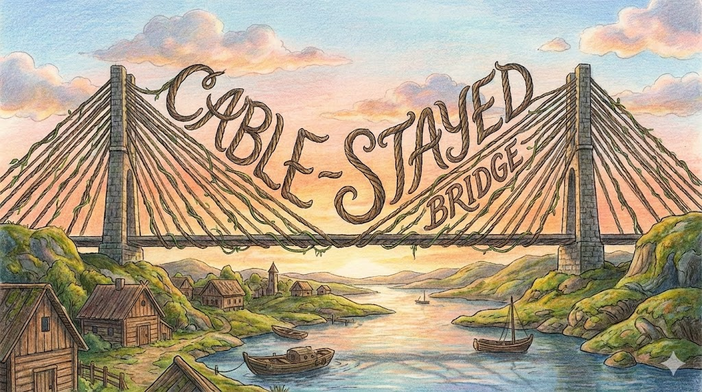 - 해석: (토목/건축 지문) 주탑에서 밧줄(Cable)을 사선으로 내려서 다리 상판을 지탱하는 교량 형태입니다. (예: 서해대교, 인천대교)