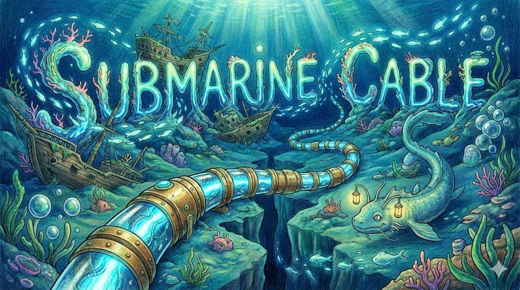 - 해석: 바다 밑바닥에 설치하여 대륙 간 통신을 가능하게 하는 케이블입니다. (Undersea cable)