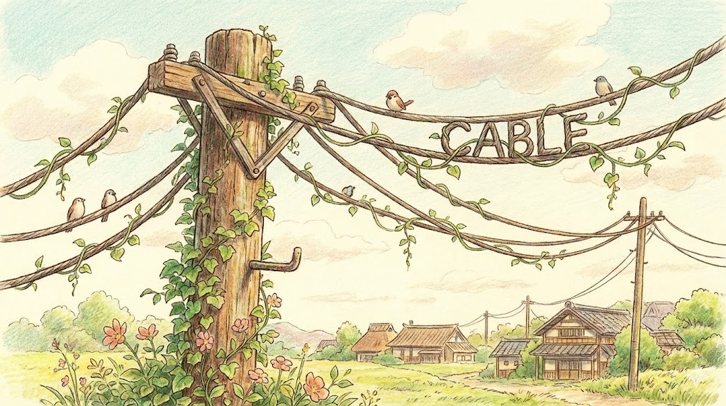 cable은 무거운 것을 지탱하는 '강철 밧줄', 데이터를 나르는 '굵은 전선', 그리고 우리의 여가 시간을 책임지는 '유선 방송' 을 의미합니다.