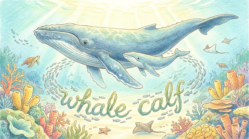 - Whale calf: 'calf'는 소뿐만 아니라 코끼리, 고래, 기린 등 대형 포유류의 '새끼' 를 부를 때도 씁니다. (강아지는 puppy, 새끼 고양이는 kitten인 것과 다름)