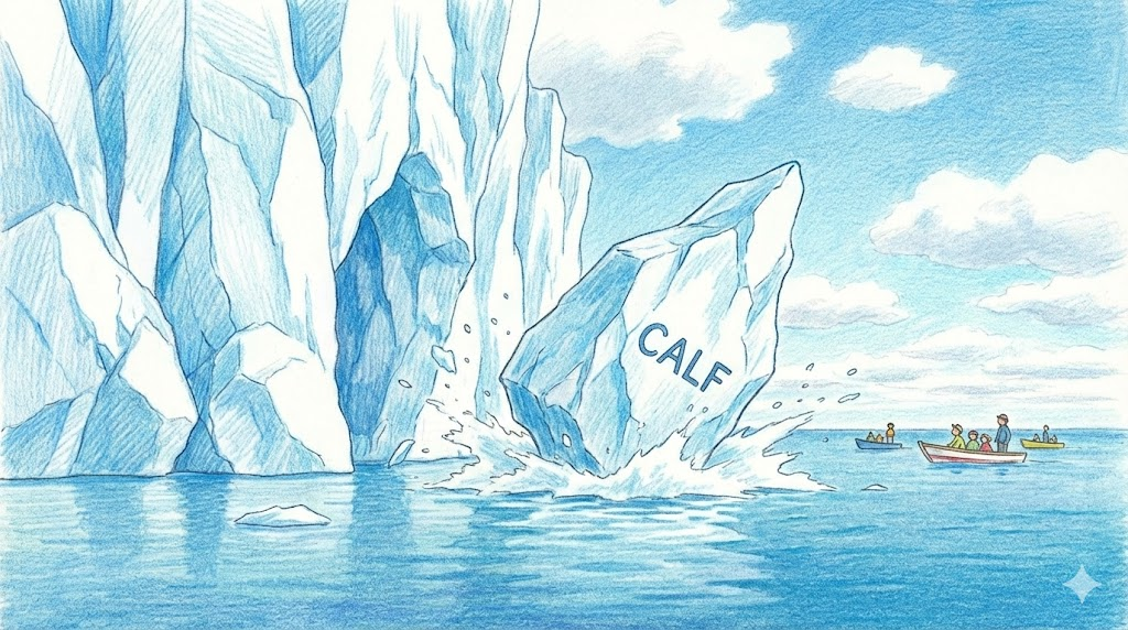 - calve [kæv] (동사): 새끼를 낳다, (빙하가) 쪼개지다
