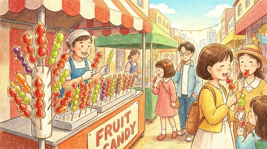 | 동사 (V.) | 설탕에 절이다 | 과일 등을 설탕물에 끓여서 보존하다. (주로 수동태) | Candied apples. (설탕 입힌 사과 / 탕후루 같은 것.) |