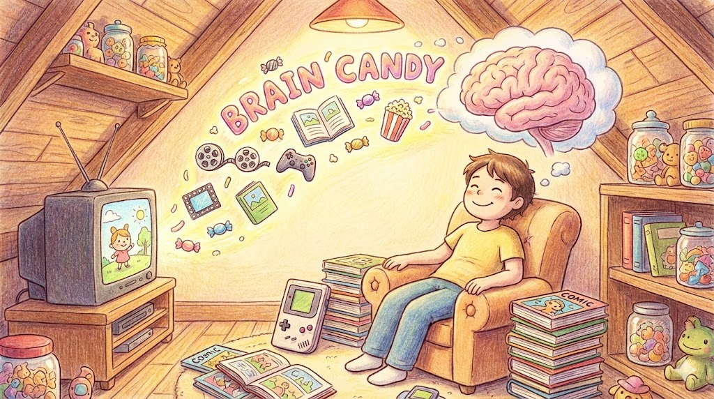 - Brain candy: 깊은 생각 없이 즐길 수 있는 오락 영화나 가벼운 소설 등 '머리 식히기 좋은 콘텐츠(킬링타임용)' 입니다.
